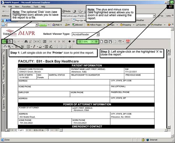 1. Left single-click on the ‘Printer’ icon to print the report.