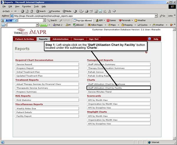 1. Left single-click on the ‘Staff Utilization Chart by Facility' button located under the subheading ‘Charts’.