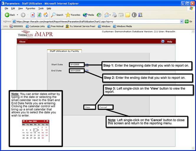 Step 1: Accessing the Staff Utilization Chart by Facility Report