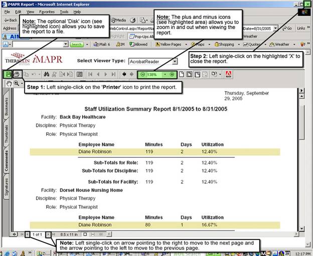 1.      Left single-click on the ‘Printer’ icon to print the report.