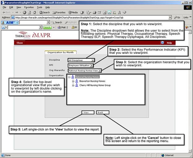 Step 1: Accessing the Organization by Month View Scorecard Report