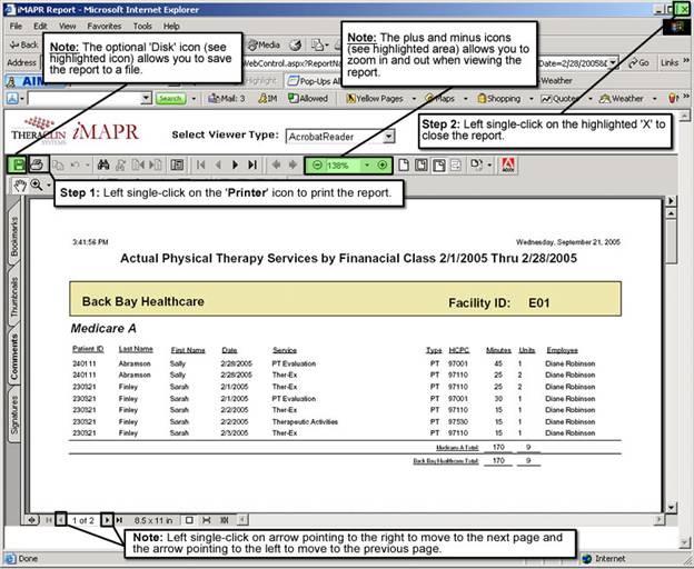 Step 1: Accessing the Actual Therapy Services by Financial Class Report