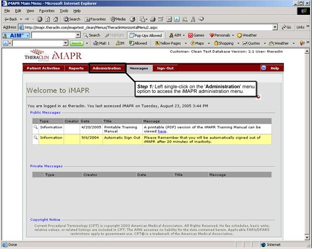 1. Left single-click on the ‘Administration’ menu option, this will bring up the iMAPR reporting menu.