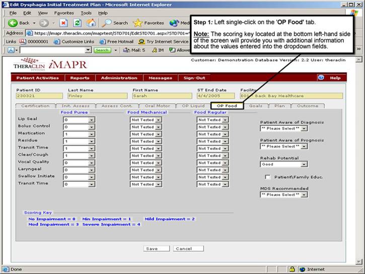 Step 7: Viewing the Dysphagia Assessment Information