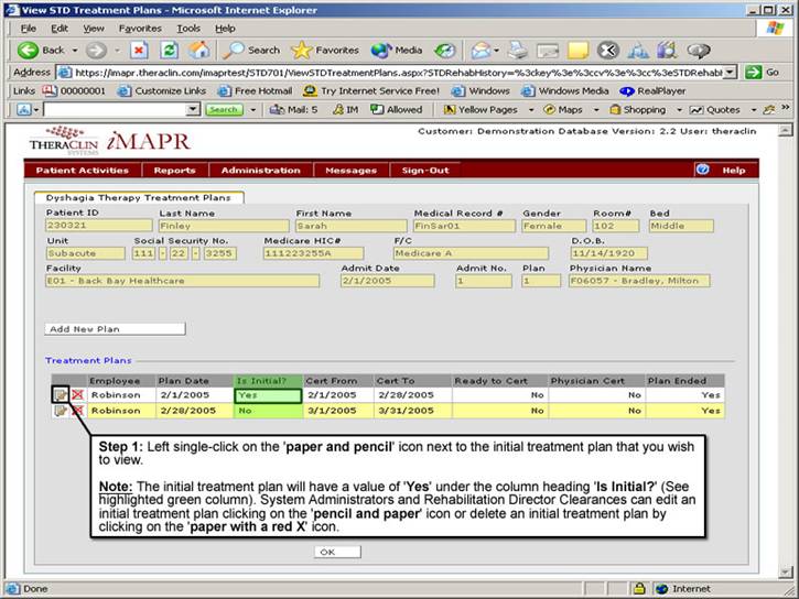 1. Left single-click on the ‘paper and pencil’ icon next to the Initial Treatment plan that you wish to view.