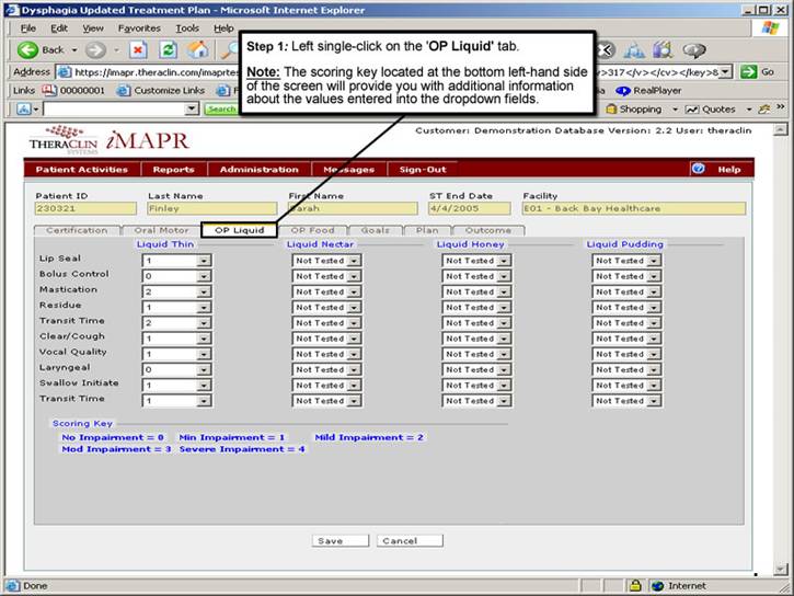 The scoring key located at the bottom left-hand side of the screen will provide you with additional information about the values entered into the dropdown fields.