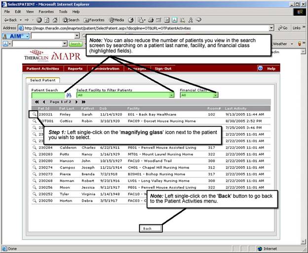 1. Left single-click on the ‘magnifying glass' icon next to the patient that you wish to print and/or view the report.