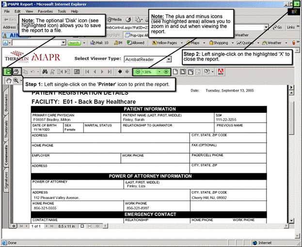 1. Left single-click on the ‘Printer’ icon to print the report.