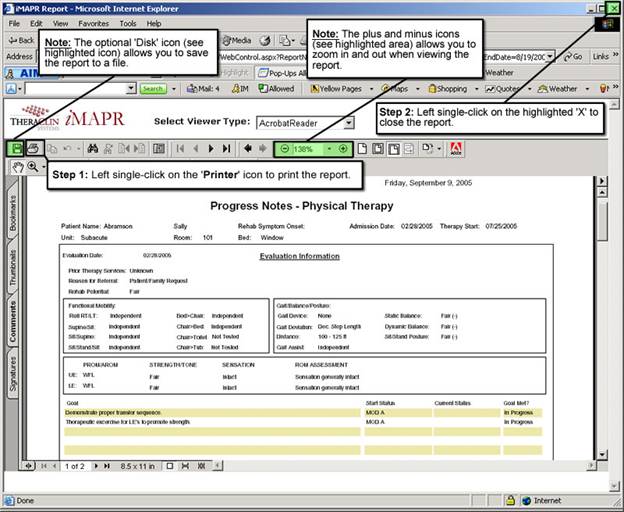 1. Left single-click on the ‘Printer’ icon to print the report.