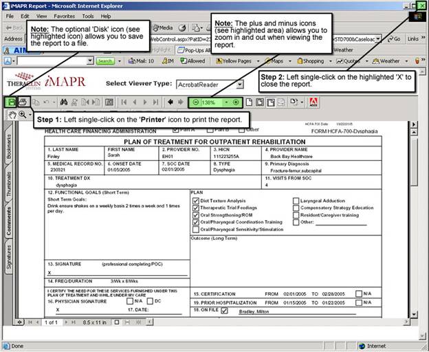 1. Left single-click on the ‘Printer’ icon to print the report.