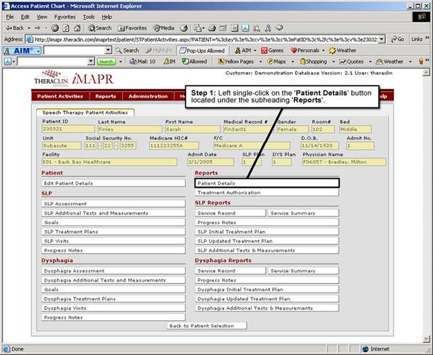 1. Left single-click on the ‘Patient Details' button.