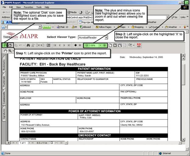 1. Left single-click on the ‘Printer’ icon to print the report.