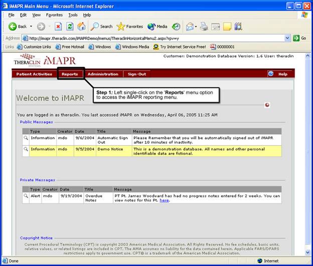 To access the reporting menu of the iMAPR system follow these steps: